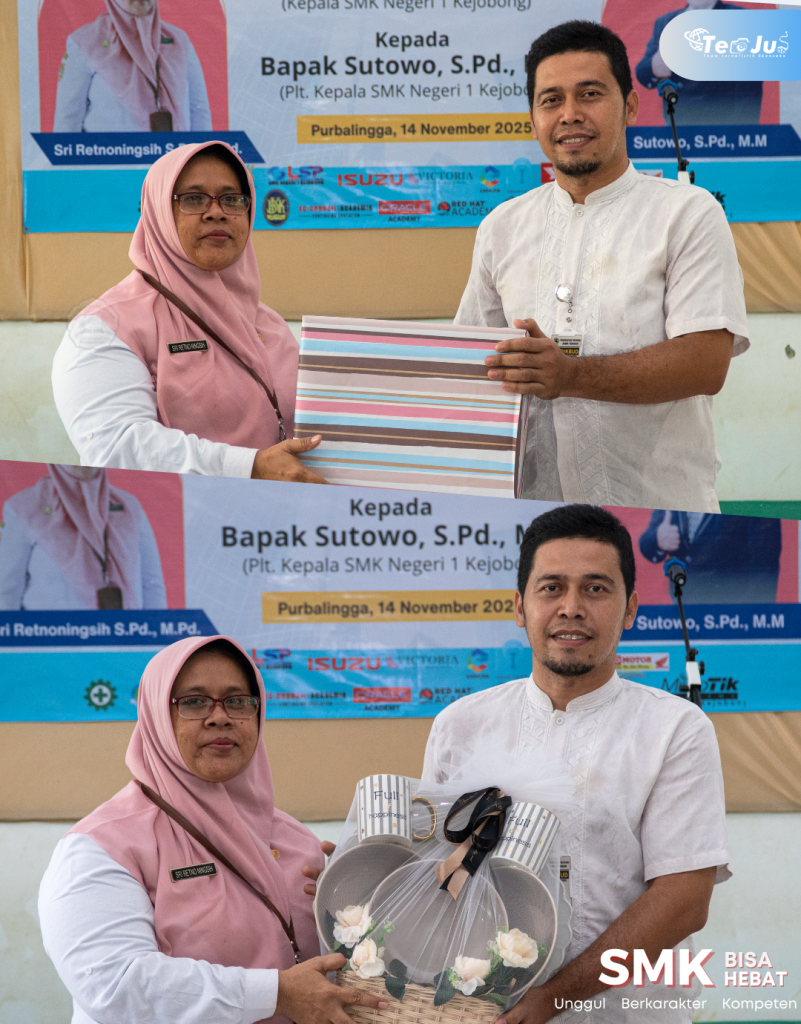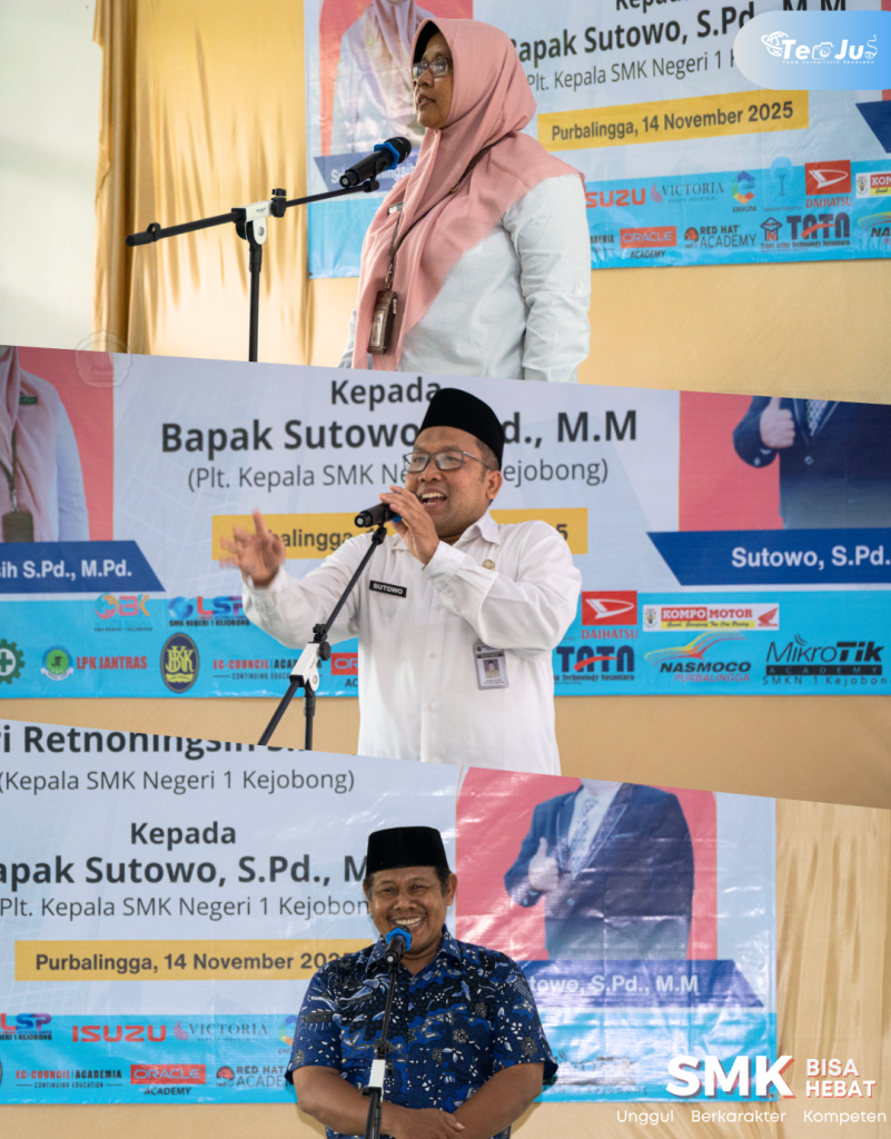 Pada kesempatan yang istimewa ini, kami juga menyampaikan selamat datang kepada Bapak Sutowo, S.Pd., M.M. sebagai Kepala SMK Negeri 1 Kejobong yang baru. Kami berharap kehadiran beliau membawa semangat baru, inovasi, dan langkah maju dalam mewujudkan sekolah yang unggul, berkarakter, dan berdaya saing sesuai dengan visi dan misi pendidikan.